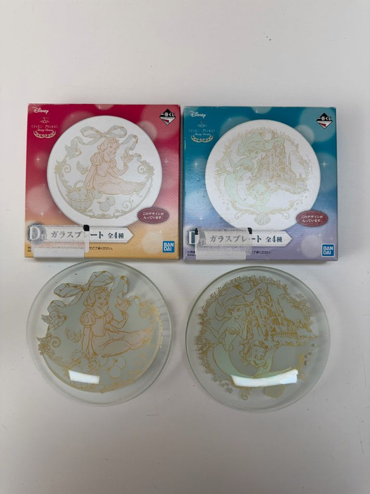 반다이 이찌방쿠지 이치방쿠지 디즈니 백설공주 인어공주 유리플레이트 2종 일괄 전시하다가 내놓습니다.