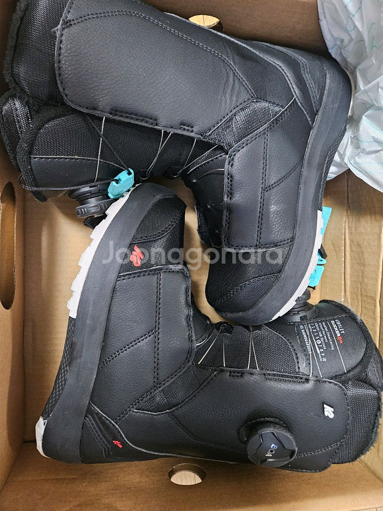 스노우보드 부츠와 바인딩이 함께 구성된 세트예요. 상태나 사이즈는 사진 참고해 주세요. 제가 225사이즈 신는데, 꽈악 맞아서 잘 타졌어요. 한시즌 정도 사용했고 사진보다시피 깨끗합니다. 클리커 신고 벗기 편리합니다! 박스에 깔끔하게 포장되어 있고 상태가 양호해 보입니다. 스노우보드 입문자나 업그레이드 하실 분께 추천드려요!