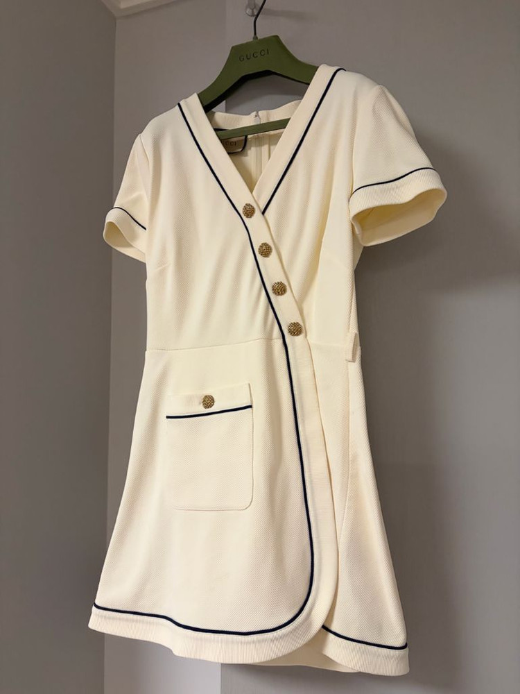 정품 Gucci 여성 드레스입니다. 2021년 5월 부산 센텀백화점에서 구매했습니다. 아껴만 두고 있었는데 임신해서 더이상 못 입네요. 단 2회 착용했고 깨끗하게 드라이 후 보관 중 입니다. 정품 벨트보관백+정품 의류커버 같이 있습니다. ✔ 모델코드 653408 XJDE4 ✔ S사이즈 (165/88Y) - 173cm/58kg 여자가 입었을때 살짝 짧은미니스커트 ✔ 오염, 늘어짐, 하자 없음 (상태 매우 좋음) 구매가 300 중후반대 제품입니다. 인천 송도 직거래 선호 / 택배는 선불입니다. 적당한 네고 가능합니다.
