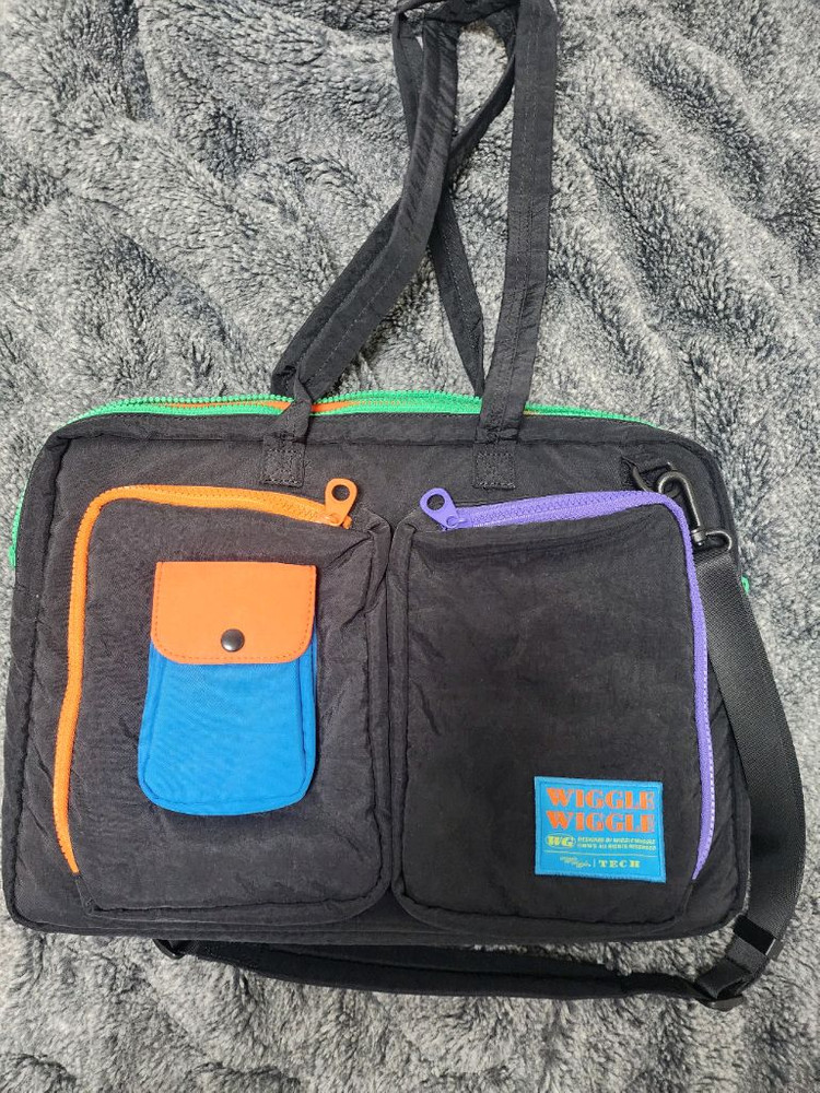 몇 번 들지 않아 상태 좋아요. 가볍고요. 메면 예뻐요. 숄더로 크로스로도 가능합니다. 끈이 길어서 어깨에 잘 걸쳐져요. 블랙색상입니다. 아웃도어 가방 같이 드릴게요. 택포. 반품사양.