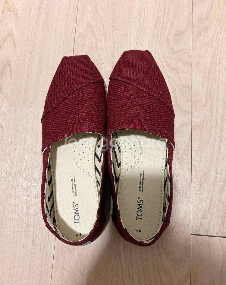 정품 탐스 캔버스 플랫슈즈 버건디 컬러예요. 사이즈는 250이고 상태거 정말 양호한 제품입니다. 사진보시면 아시겠지만 거의 새상품처럼 깔끔하고 편안한 착용감으로 데일리로 신기 정말 좋은 아이입니다.