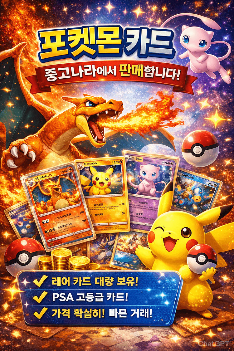 🧸 7살 아들 포켓몬 사주다 모은 반짝이 카드 정리합니다 카드는 잘 몰라서 아들이랑 마트/카드샵에서 사다 보니 반짝이는 것들이 꽤 모였네요 😅 아들은 일반 카드로 놀고 반짝이는 건 모셔두기만 해서 정리합니다. 📌 시세는 TCGBOX 기준 확인 후 S / A / B 등급으로 직접 나눠서 시세 대비 20~40% 낮게 올렸습니다. 📌 상태 기준 S : 눈에 띄는 하자 없음 A : 미세 스크래치 B : 사용감 있음 📌 사진은 요청 주시면 찍어서 보내드립니다. (원하시는 카드명 말씀해주세요) 고가 카드도 있습니다: 기로치ex SAR 이슬의 고라파덕 AR 심향의 모험 SR 니아 SR 등 여러 장 구매하시면 네고 가능합니다 🙏 편하게 문의 주세요! *카드 목록* 1. 심향의 모험 SR (sv9a 083) / A등급 / 19600원 2. 메가자리ex (sv9a 003) / S등급 / 3200원 3. 암팰리스 (sv9a 008) / S등급 / 800원 4. 이슬의 갸라도스 (sv9a 026) / S등급 / 1600원 5. 심향의 블레이범 (sv9a 017) / S등급 / 1600원 6. 난천의 로즈레이드 (sv9a 005) / S등급 / 800원 7. 어써러셔ex (sv9a 032) / S등급 / 2000원 8. 심향의 피츄 (sv9a 036) / S등급 / 400원 9. 왕자리 AR (sv9a 064) / S등급 / 3840원 10. 이슬의 고라파덕 AR (sv9a 071) / S등급 / 24000원 11. 메가이어롭&푸린GX (SM12 073) / S등급 / 8800원 12. 피카츄V (s4 030) 재입고 / B등급 / 5400원 13. 에이스번V (s1a 016) / B등급 / 3600원 14. 부스터V (s6a 011) / S등급 / 3200원 15. 야느와르몽 (sv6a 020) / S등급 / 2000원 16. 부르르룸ex (sv6a 015) / S등급 / 2000원 17. 조타구ex (sv6a 036) / S등급 / 2800원 18. 님피아VMAX (s6a 041) / S등급 / 5200원 19. 다투곰 붉은 달 (sv6a 025) / S등급 / 1440원 20. 님피아V (s6a 040) / S등급 / 4800원 21. 배우르V (s1a 062) / S등급 / 2000원 22. 데스니칸 (sv11w 037) / S등급 / 800원 23. 메타그로스V (s6K 049) / S등급 / 2400원 24. 리피아V (s6a 002) / S등급 / 2800원 25. 사다이사V (s1a 046) / S등급 / 2800원 26. 에브이V (s6a 035) / S등급 / 3600원 27. 쏘콘ex (sv2D 005) / B등급 / 2100원 28. 킹드라ex (sv6a 012) / B등급 / 2280원 29. 리피아VMAX (s6a 003) / S등급 / 3600원 30. 가라르 야도킹V (s5a 046) / A등급 / 2450원 31. 칼라마네로V (s2 070) / S등급 / 2800원 32. 부스터ex (sv8a 022) / C 급 / 3500원 33. 님피아V (s6a 040) / S등급 / 4800원 34. 엑스라이즈 (sv6a 046) / B등급 / 900원 35. N의 레시라무 (sv9 074) / S등급 / 2000원 36. 펄스멍V (s1a 031) / S등급 / 4400원 37. 사다이사V (s1a 046) / S등급 / 2800원 38. 데인저러스 광선 (sv6a 054) / S등급 / 4000원 39. 배우르V (s1a 062) / S등급 / 2000원 40. 블래키V (s6a 047) / A등급 / 5600원 41. 게을킹ex (sv8 084) / A등급 / 1400원 42. 복숭악동ex (sv6a 039) / S등급 / 3200원 43. 이야후ex (sv6a 037) / S등급 / 2000원 44. 블래키VMAX (s6a 048) / S등급 / 7200원 45. 폭거북스 AR (sv7 105) / S등급 / 2800원 46. 고릴타V (s1a 008) / S등급 / 4400원 47. 히스이 포푸니크V (S10P_044) / S등급 / 2800원 48. 번치코V (s5a 007) / S등급 / 2800원 49. 흑마 버드렉스VMAX (s6K 037) / S등급 / 8800원 50. 메가이어롭ex (M2_072) / S등급 / 2400원 51. 고릴타V (s1a 008) / S등급 / 4400원 52. 어치르돈V (s6K 017) / S등급 / 2000원 53. 조로아크 (sv6a 032) / S등급 / 800원 54. 로켓단의 프리져 (sv10 022) / S등급 / 2400원 55. 스멍V (s1a 031) / S등급 / 4400원 56. 샤미드V (s6a 015) / S등급 / 3200원 57. 요가램V (s7R 036) / S등급 / 2800원 58. 핫삼AR (sv3 116) / A등급 / 6650원 59. 니아SR (s6K 081) / S등급 / 12800원 60. 시비꼬ex (sv2P 065) / S등급 / 4800원 61. 이슬의 갸라도스 (sv9a 026) / S등급 / 1600원 62. 피카츄ex (sv8 033) / B등급 / 5940원 63. 심향의 마그카르고 (sv9a 019) / S등급 / 1200원 64. 과미드라 AR (sv9a 068) / S등급 / 2800원 65. 페퍼의 요씽리스 (sv9a 055) / S등급 / 800원 66. 독케일 AR (m2a 195) / S등급 / 800원 67. 어써러셔ex (sv9a 032) / S등급 / 2000원 68. 페퍼의 마피티프ex (sv9a 052) / S등급 / 2000원 69. 로켓단의 따라큐 (m2a 205) / S등급 / 5600원 70. 테라파고스ex (m2a 145) / S등급 / 800원 71. 기로치ex SAR (sv6a 089) / S등급 / 79200원 72. 페르시온AR (sv6a 075) / S등급 / 2400원 73. 눈꼬마 AR (m2a 200) / S등급 / 2000원 74. 심향의 칠색조ex (sv9a 020) / S등급 / 4000원 75. 메가곤율거니ex MA (m2a 231) / S등급 / 4000원 76. 로켓단 트래피더 (m2a 016) / S등급 / 1000원 77. 이야후 (m2a 081) / S등급 / 1000원 78. 배우르 (m2a 142) / S등급 / 1000원 79. 레쿠쟈 (m2a 127) / S등급 / 3000원 80. 로켓단의 프리져 (sv10 022) / S등급 / 2400원 81. 라티아스ex RR (m2a 075) / S등급 / 1000원 82. 유리나팔 SR (m2a 216) / S등급 / 1600원 ----------------------추가------------------------- 83. 성스러운분말 (sv9a 056) / S등급 / 1200원 84. 심향의 모험 (sv9a 062) / S등급 / 2400원 85. 성스러운분말 (sv9a 056) / S등급 / 1200원 86. 밤의 들것 (sv6a 055) / S등급 / 2800원 87. 제로의 대공동 (sv7 102) / S등급 / 1440원