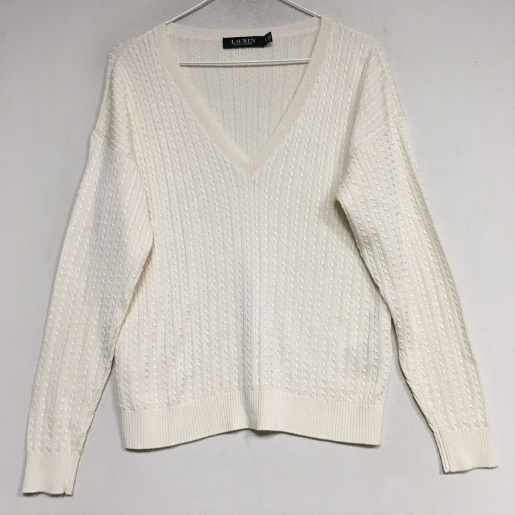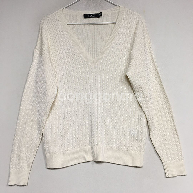 가슴 54 기장 58 아이보리 색상의 랄프로렌 브이넥 니트입니다. 케이블 패턴이 고급스러워요 구김많이 안가는 제품이라 편하게 입기좋아요 새상품 컨디션으로 깨끗한상태에요 ~^^