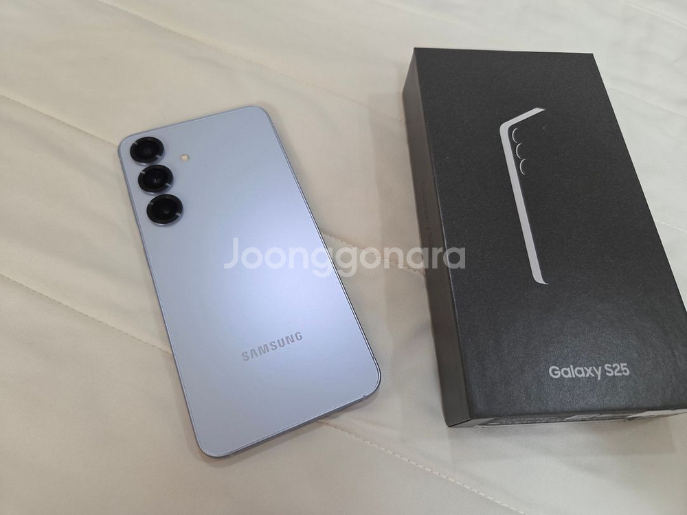 갤럭시S25 아이스블루 256GB 정상해지된 상품입니다. 상태 양호합니다. 아무런 하자 없습니다. 추가적인 구성품은 없고 사진의 상자는 전달시 담아드릴 상자를 함께 촬영한 사진입니다.