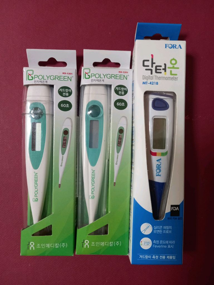 <미사용 새제품> 폴리그린 전자체온계 2개 닥터온 전자체온계 1개 3개세트 -만원. (( 개별가 1개에 만원 상당하는데 정리중이라 3개세트로 판매합니다 )) - 빠른 시간 안에 체온 측정이 가능합니다 - 안전한 재질로 만들어졌습니다 - 겨드랑이 측정 전용입니다 바로거래 가능하신분만 채팅주세요 입금순-