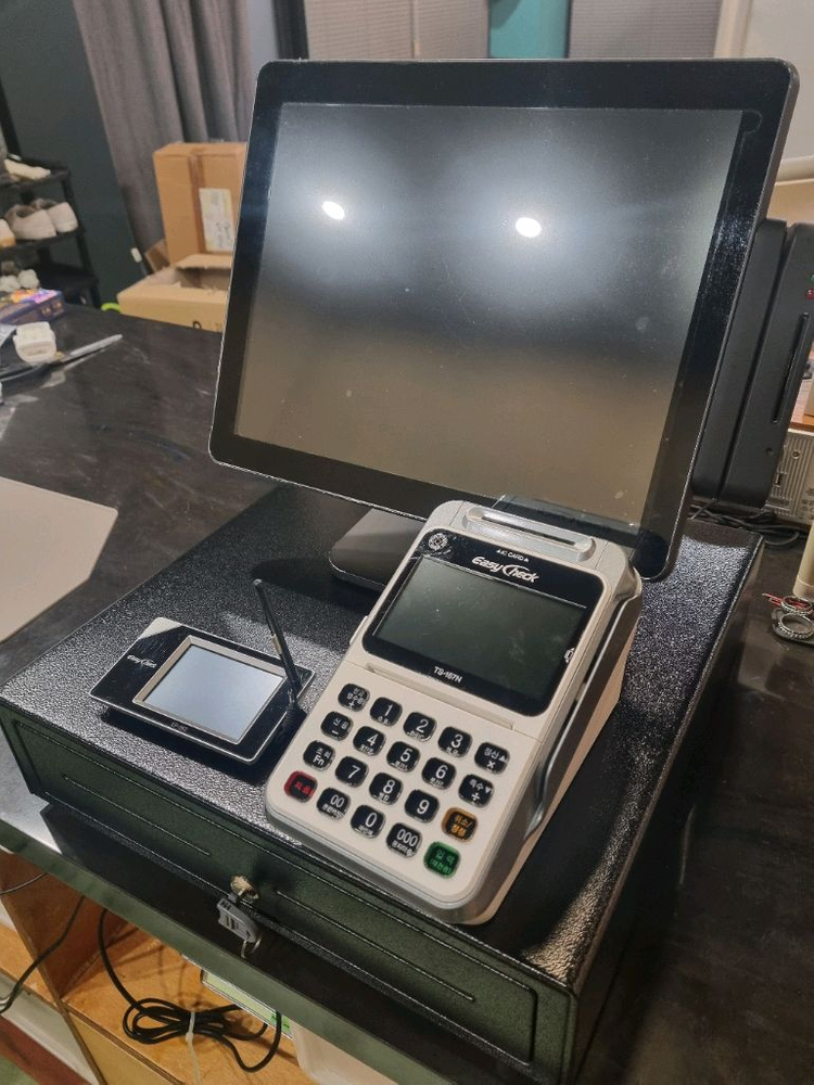 오케이포스 옵티머스 세트입니다. 할부 아니고 일시불 구매한 거여서 등록 후 바로 사용 가능합니다. 영수증 프린터 겸용 카드단말기가 포함돼있어 일시적 컴퓨터 오류 상황에서도 백업용으로 결제용도로 사용할 수 있습니다. 전체적으로 사용감 적고 상태가 좋습니다. 직거래 장소는 대전 중구 대사동 입니다.
