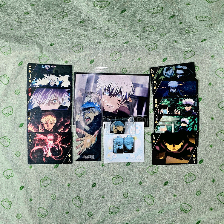 18권 특전 부록 핀 배지 20권 특전 아크릴 참 2종 엽서, 책갈피, 펀딩 트럼프 카드 중 고죠 일러스트 카드 전부 새 상품, 군번줄 챙겨드립니다. 일괄로 판매합니다.