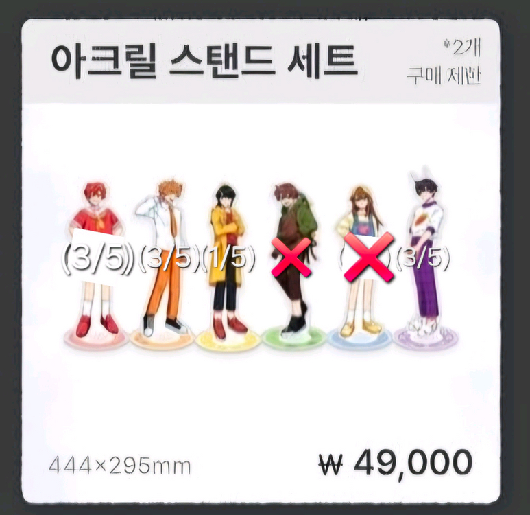 아크릴 - 개당 8200원 캔뱃지 - 개당 3천원 키캡 - 개당 3400원 스탬프 -개당 2500원 조각스티커 개당 - 2000원