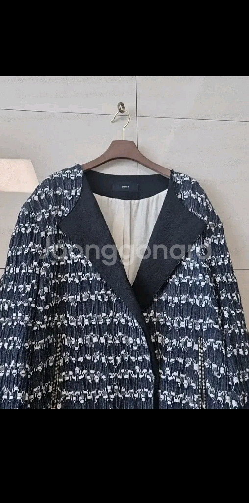 시스템 SYSTEM 브랜드의 고급스러운 트위드 자켓입니다. 네이비 & 화이트 믹스 패턴으로 클래식하면서도 세련된 무드를 연출할 수 있어요. 지퍼 포켓 디테일과 넉넉한 핏으로 간절기 아우터로 활용하기 좋습니다. 브랜드 : SYSTEM (시스템) 사이즈 : 88-98-165 (라벨 참고) 실측 : 가슴단면 56cm / 총장 71cm 66입니다. 넉넉하게나왓어요 소재 : 면, 나일론, 레이온 혼방 (라벨 참조) 컬러 : 네이비 & 화이트 패턴 상태 : 전체적으로 깨끗하며 큰 하자 없음 ✔️ 중고 특성상 미세 사용감 있을 수 있습니다. ✔️ 실측 사이즈는 ±1~2cm 오차 있을 수 있습니다.