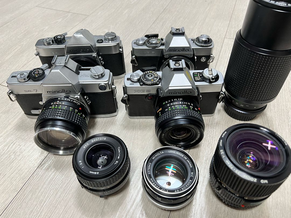 모두 구하기도 어렵고 레어급 렌즈급들 렌즈들 결과물 끝내주며 이종 교배급으로도 엄청 선호받는 렌즈들 입니다 미놀타 MC ROKKOR-PG 50mm 1:1.4 (20만) 미놀타 MD W.ROKKOR 28mm 1:2.8. (17만) 49mm 짜리 소구녕 아니고 55mm짜리 대구경 렌즈입니다 Tokina EL 28mm f2.8 (15만) MD ZOOM 35-70mm 1:3.5 (13만) mc rokkor-pf 1:1.7 f=55mm (12만) MD ZOOM ROKKOR 1:4.5 F=80-200 외관아주좋으나 내부청소필요해보임 (6만) Sr-7 레전드 바디 (13만) XG9바디. (11만) sR-1바디. (6만) XD5바디 고장 (3만)