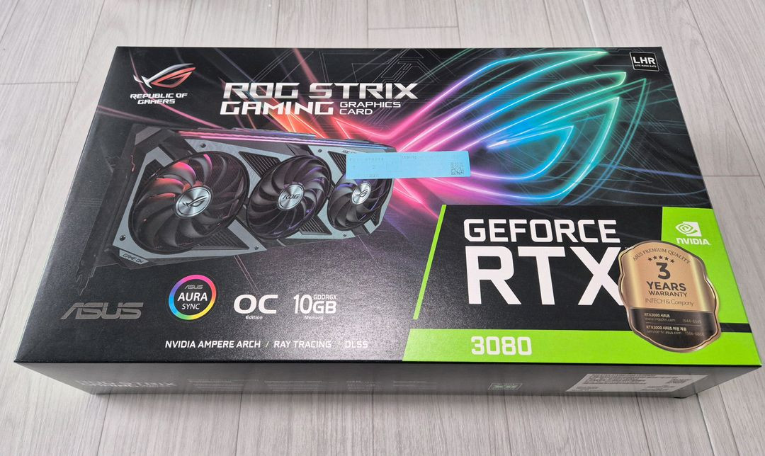 ASUS ROG STRIX 지포스 RTX 3080 O10G GAMING OC D6X 10GB 3080 로그스트릭스 박스포함 구성품 모두있습니다 동작 이상없고 벤치마크 온도 양호 박스 넣어 보관중입니다 택배거래가능하고 안전결제되지만, 안전결제시 판매금액에 1% 추가됩니다 계좌거래 가능합니다 직거래 대구 경산 입니다