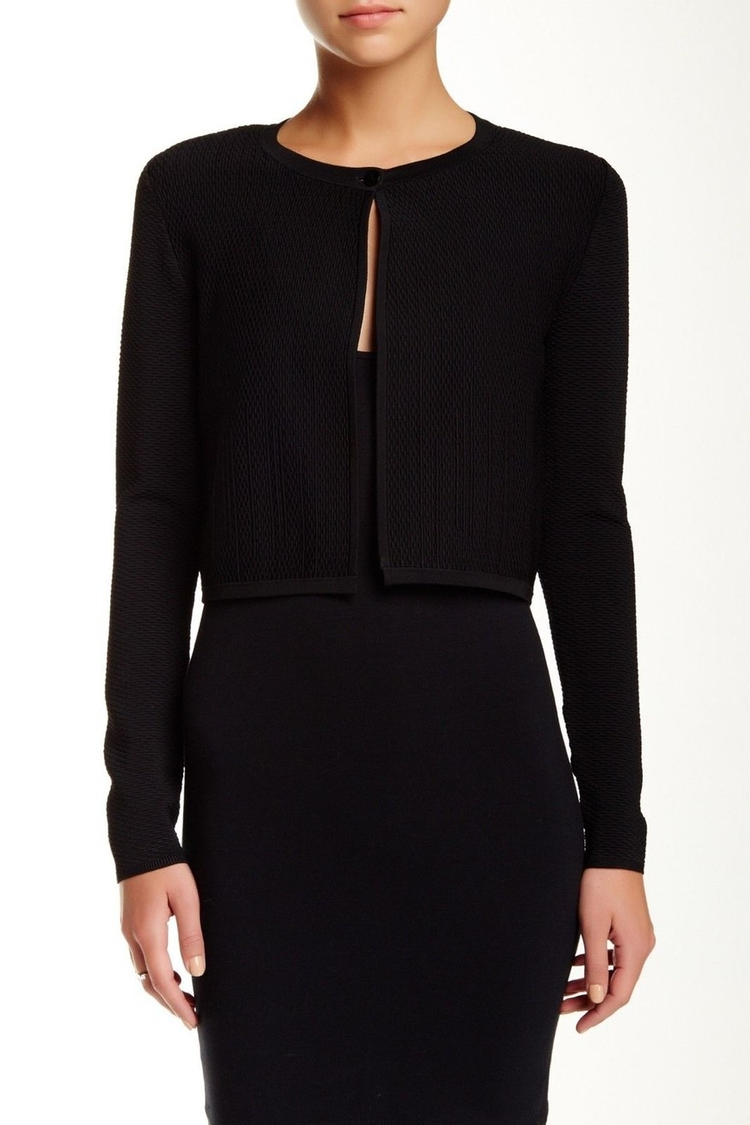 새상품 / XS(P) 44 55 사이즈 톡톡한 소재 DVF Rochelle Textured Cardigan in Black - Crew neck - Long sleeves - Front button closure - Allover textured pattern - Imported - 85% rayon, 13% polyester, 2 % spandex - Care: Dry clean