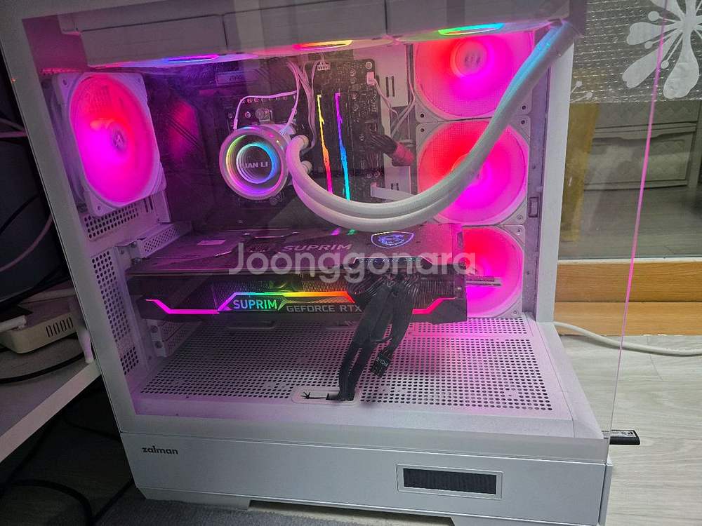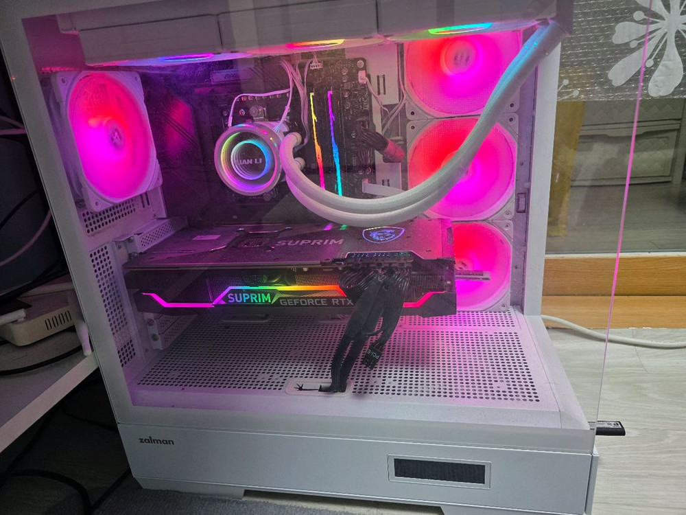 CPU-AMD 7800x3D MB - MSI B650 박격포 WIFI RAM-DDR5 G.SKILL 32G 글카-msi 트리오3080 SSD- 1TB CPU쿨러-리안리 갤러해드2 수냉쿨러 파워-시소닉850 골드 케이스-잘만 P50 SD (뒤에 다나와견적은 예시가격입니다) 최신 고성능 CPU와 그래픽카드로 구성된 고성능 게이밍 컴퓨터입니다. 중고 미개봉제품들로 부품하나하나 사서 조립했습니다. 화이트 케이스에 RGB 조명이 멋스럽게 설치되어 있어요 거래후 반품 환불 불가합니다 직거래는 전북 익산입니다