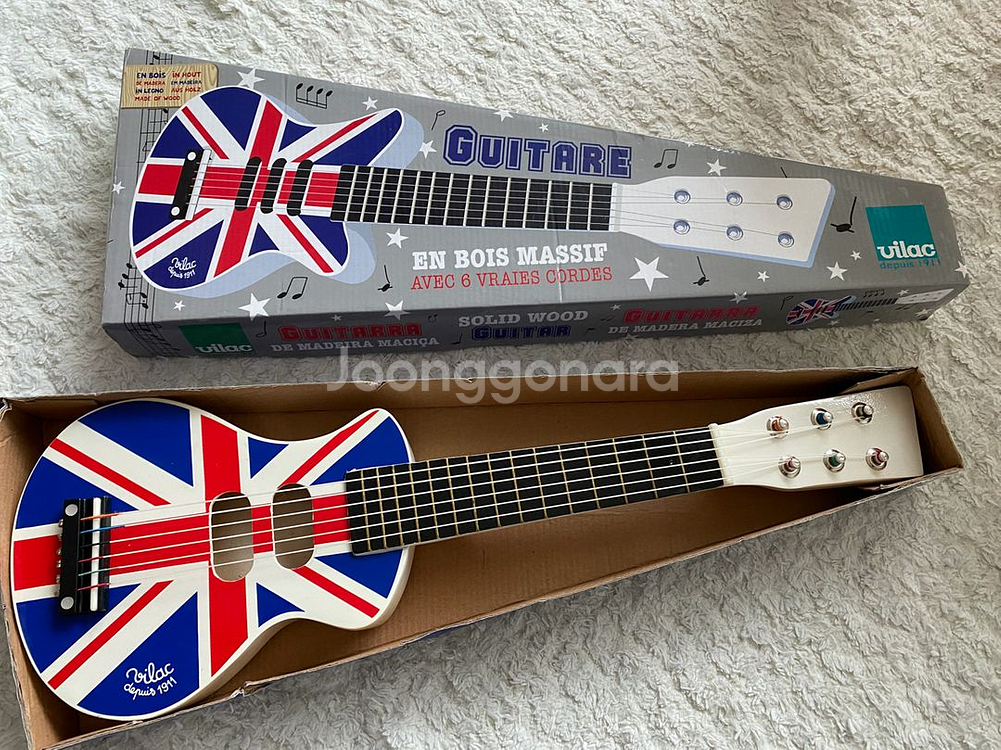 프랑스 빌락의 나무소재 어린이 기타예요. 새제품인데 보관하면서 종이박스 모서리 마모와 한군데 찢김 있어요. 소리 잘 나고, 줄 조이는 나사는 조여 사용하시면 되어요. 길이 : 52cm *크기상 우체국택배만 가능합니다 +4000원 빌락 어린이기타 검색하시면 9만원대 이상이에요. 자세한 내용은 링크 참고하세요. https://m.smartstore.naver.com/buyingday/products/2003290539?NaPm=ct%3Dlvda19m8%7Cci%3Ddfdc2d64ac51ae91144b2f58939cb45fe706610a%7Ctr%3Dslsl%7Csn%3D199889%7Chk%3Dd5286622fe9c09cf9e27e9242a1830bfd802aa1dj