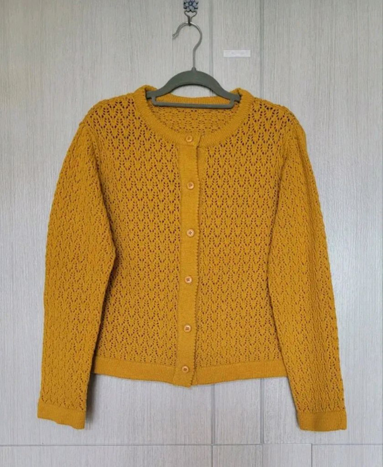 미착용 완전 새옷 반품 49 길이 46 두께감 있어요 겨자색 실제보다 사진이 진하게 나옴), 단색이라 꽃무늬(비꼴리끄와도) 원피스와 코디하면 잘 어울리고 소녀소녀해요 봄가을 환불반품은 불가합니다.