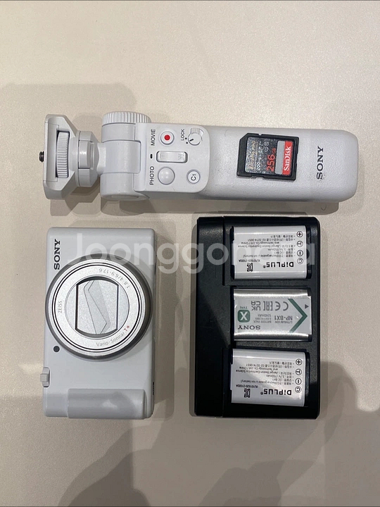 브이로그 카메라와 배터리 2개, 충전기와 SD 카드, 슈팅그립이 포함된 풀세트입니다. 컴팩트한 사이즈로 휴대성이 좋고 상태도 양호해요. 사진 촬영이나 영상 제작용으로 활용하기 좋습니다. 바로 들고나가서 촬영하시면 됩니다 :)