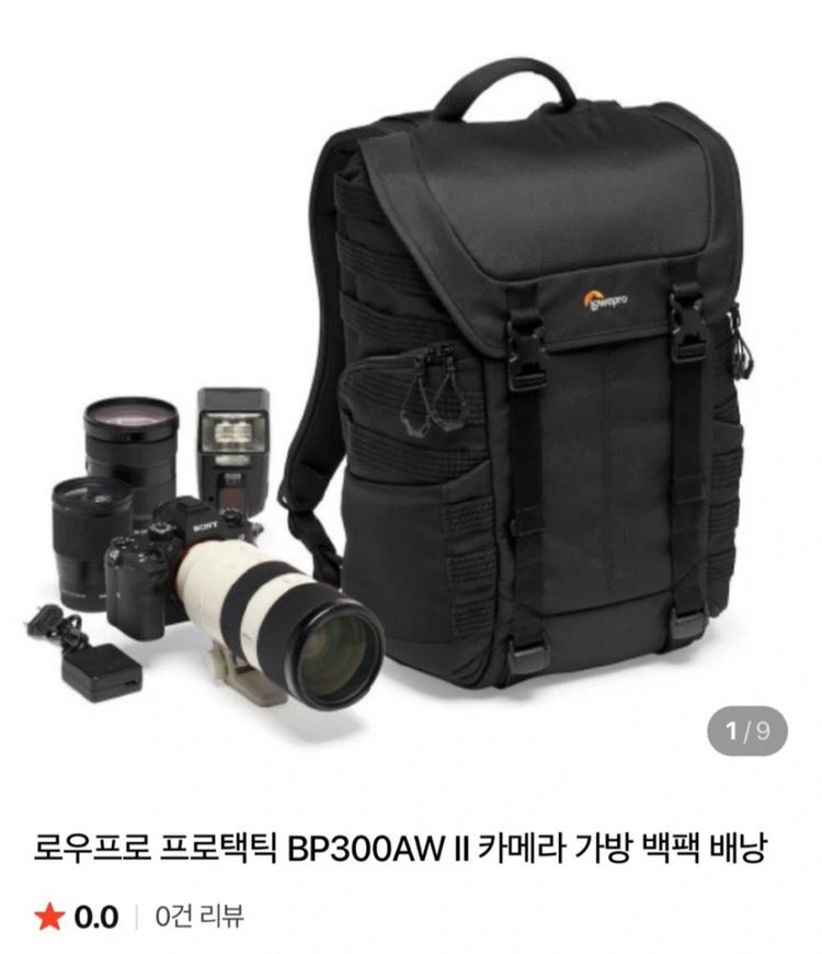 로우프로 프로택틱 BP300 AW II 카메라 백팩입니다 - 외부 크기: 30 x 18 x 44 cm - 내부 크기: 27 x 12.5 x 37 cm - 무게: 1.68kg 견고한 외부 디자인으로 장비를 안전하게 보호해주고, 사용자 맞춤형 내부 수납 공간으로 편리하게 사용할 수 있습니다 다양한 포켓과 스트랩으로 구성되어 있어 실용적이고, 상태도 양호합니다.