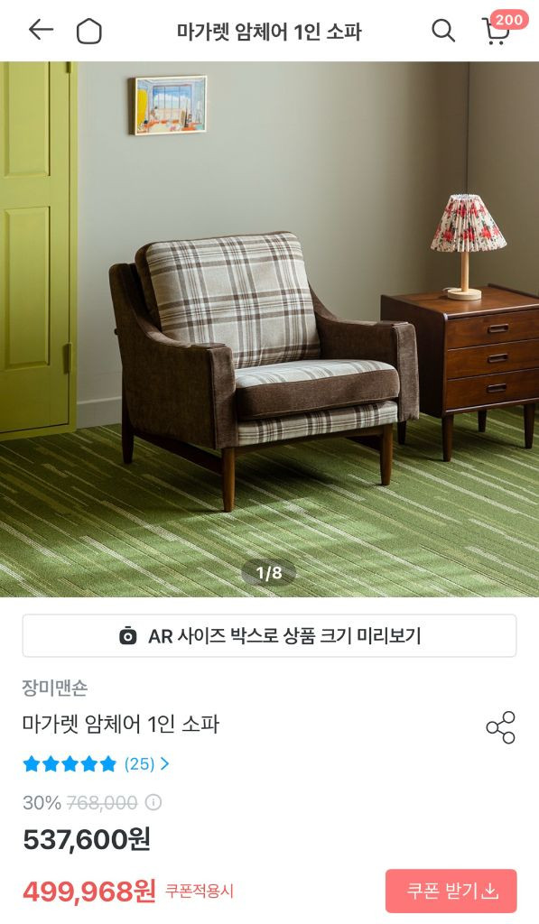 장미맨숀 제품 중 유명한 마가렛 1인 소파입니다 체크 무늬 디자인이 너무 마음에 들어 3주 대기하고 받았던 소파인데 이사로 판매하게 되었어요 작년에 구매했으나 저희집이 복층 주택이라서 잘 사용하지 않는 층에 두었기에 사실상 거의 사용하지 않은 제품입니다 포인트 가구로 놓기 너무 좋은 아이템인데 아쉽지만 내놔요 좋은 주인 만났으면 좋겠습니다 용달은 거리에따라 다르겠지만 가까운 거리면 배송해드리겠습니다 위치는 군자역 부근입니다