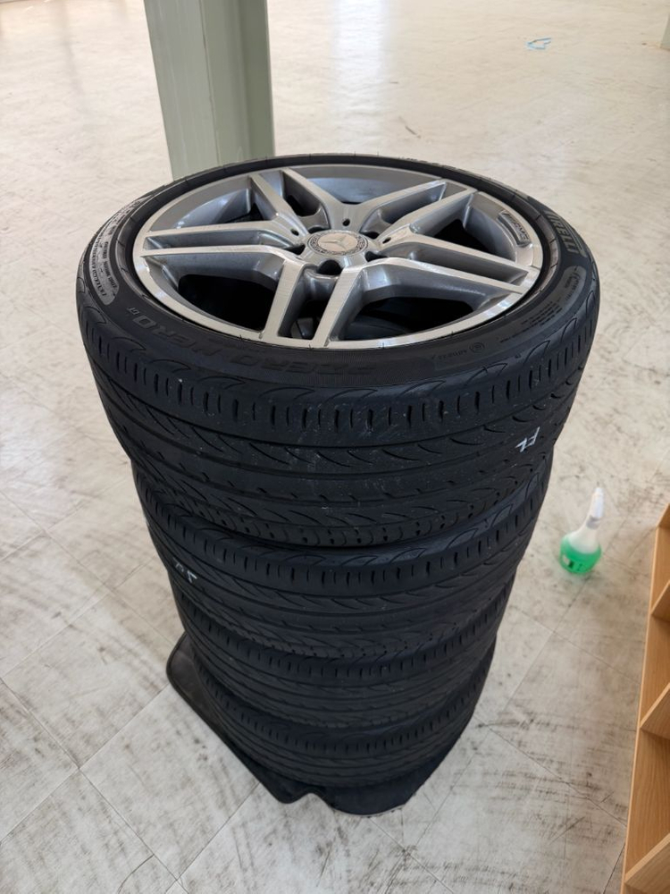 18인치 amg 휠 세트 4개 벤츠 w212 팝니다 벤츠 w212 e class 에 장착 했던 18인치 AMG 휠입니다. 휠에 주차스크래치는 있지만 깨져서 수리하거나 크랙이 있거나 하지는 않구요 윈터 썸머 휠세트 두개를 번갈아 끼우다가 차량을 윈터끼운채 판매해서 남은 제품 판매합니다 TPMS 포함해서 팔구요 타이어는 피렐리 p zero 245/40 ZR18 사이즈입니다. 타이어는 50프로정도 남았습니다 얼라이 자주 봐서 편마모는 없구요 휠싸이즈는 8.5J 옵셋 48 앞뒤동일 싸이즈 입니다 휠품번은 A2124010300 입니다