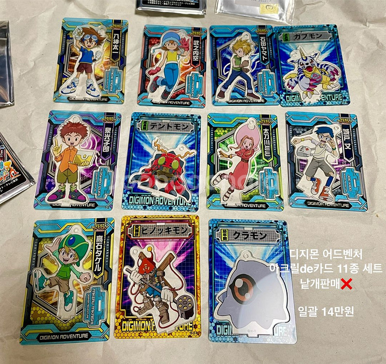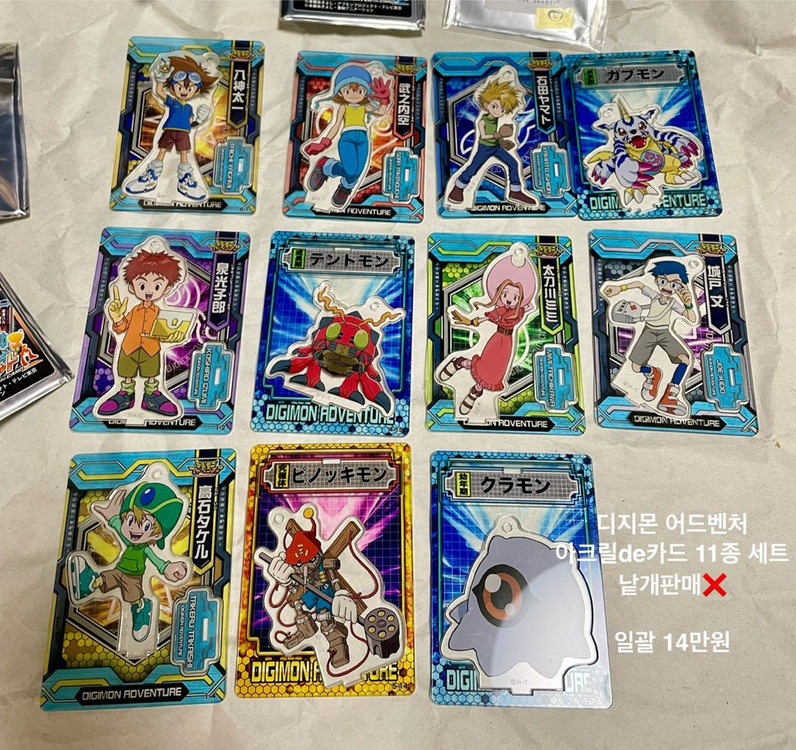 디지몬 어드벤처 아이들+디지몬 아크릴de카드 11종 일괄로 내놓습니다 해당 굿즈는 시리즈 발매 당시 제가 굿즈샵에서 하나씩 모았던 상품으로 현재는 일본 중고샵에서도 구하기 매우 어렵습니다! 급전이 필요하여 부득이하게 올립니다ㅜㅜ 낱개판매❌일괄로만 팝니다 ❤️상점에서 판매되는 상품들과 함께 구매시 합배송 가능합니다❤️