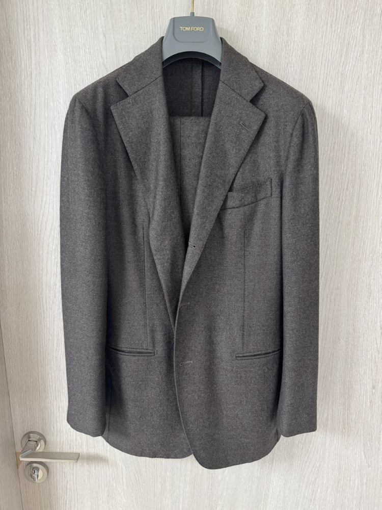 유나이티드 애로우즈 상위 라벨인 소버린하우스 다크브라운 색상의 플란넬 수트입니다. 52사이즈이지만 바지 허리를 줄였습니다. 시접은 넉넉하게 있습니다. 리얼버튼은 블랙제일사에서 하였고 이것만 해도 10만원 입니다 다만, 허리 안감 이염이 있으나 드라이 세탁 시 지워집니다. 옷걸이에 걸어 보관해서 상태 좋습니다. 별도 문의 없으시면 바로 안전결제 부탁드려요! 만듦새 매우 좋습니다. 자켓 실측 : 총장 74 / 가슴 단면 54 / 어깨 47.5 / 소매 42.5 팬츠 실츨 : 허리 40 / 안 기장 76 / 밑 통 20