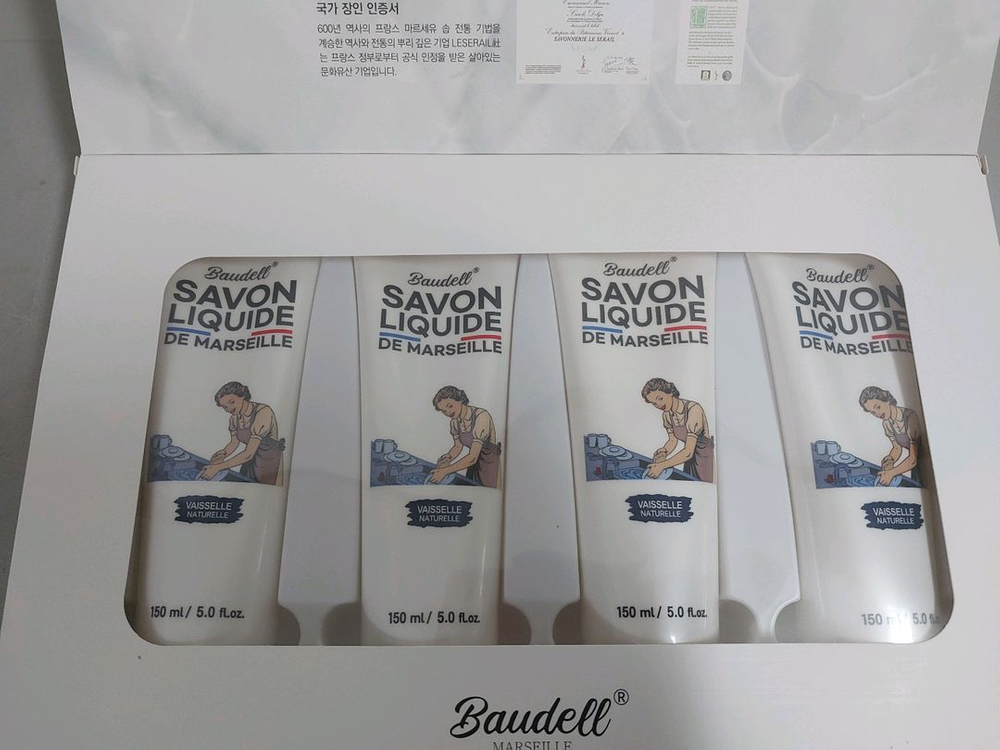 보델 Savon Liquide De Marseille 주방세제 세트 (총 4개입) 입니다 각 용량은 150ml입니다 프랑스제품이며 과일,야채도 세척 가능합니다 고급스러운 디자인이라 선물하시기도 좋습니다 새상품입니다 2박스 입니다