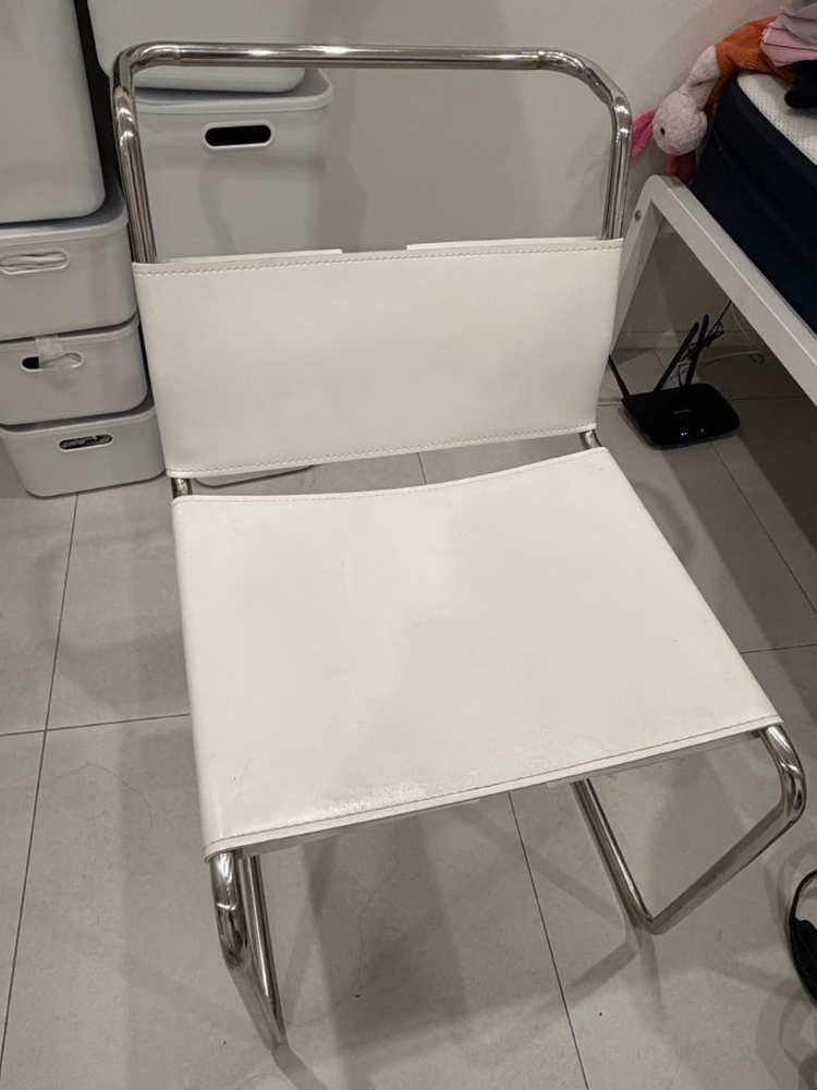 깔끔한 화이트 시트와 크롬 프레임으로 구성된 모던한 디자인이에요. 사용감은 있지만 전체적으로 양호한 상태입니다.