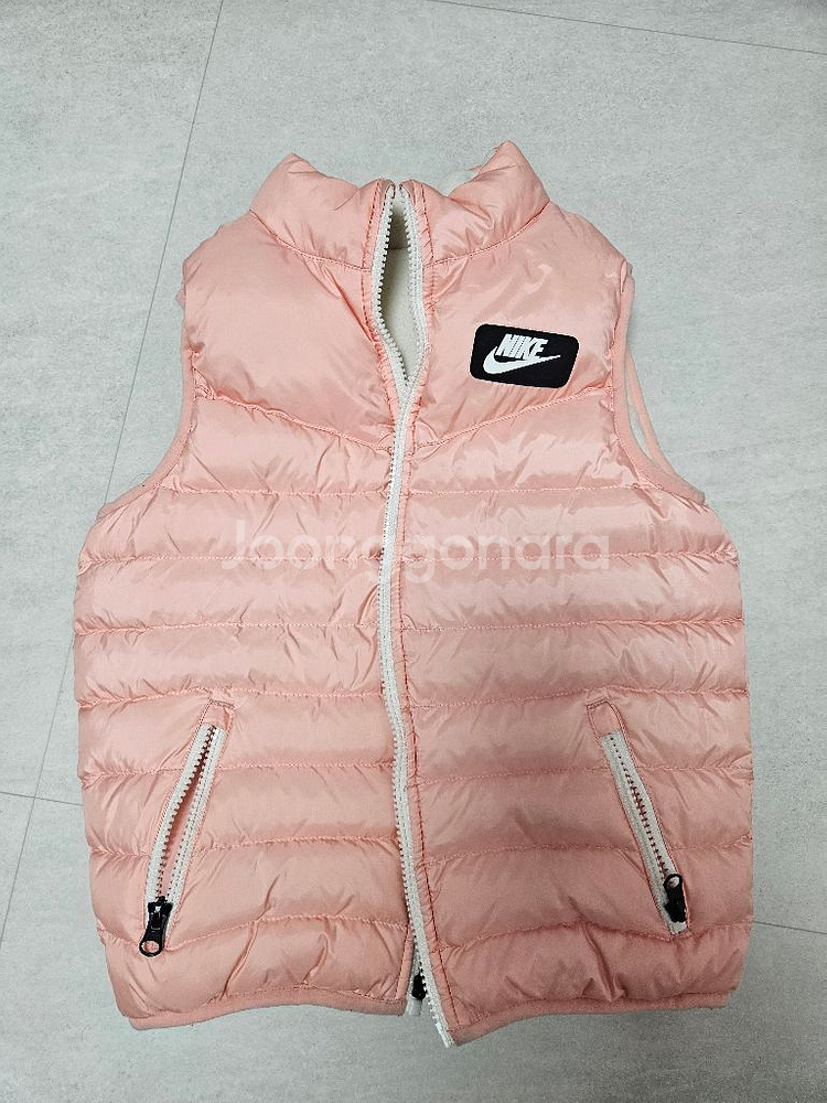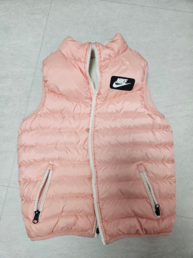 정품 키즈 패딩 조끼예요. 핑크와 화이트 컬러 조합이 예쁘고 보온성도 좋아서 겨울에 입기 딱 좋습니다. 상태 양호한 제품이에요.