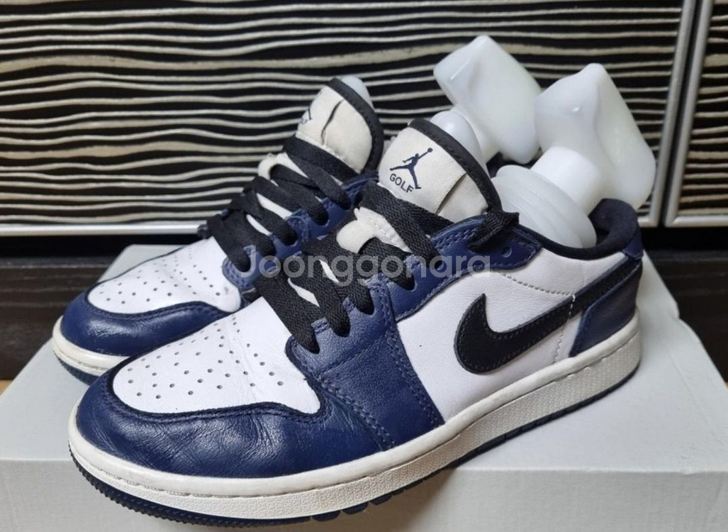 나이키 에어조던1 로우 골프화 미드나잇 네이비 DD9315-104 입니다. 화이트 & 네이비 컬러 매칭이구요. 택 사이즈는 235 입니다. 골프 로고가 없으면 그냥 에어조던으로 보일 만큼 디자인 예뻐요. 잔디와 접지 시 흔들림 없도록 신발이 발을 감싸주고 티샷부터 퍼팅에 이르기까지 완벽한 착용감을 자랑합니다. 신발 밑창 닳음 거의 없고 외관 상태도 양호합니다. 마지막 사진 처럼 까인 부분 있어요. 크게 표시나지는 않지만 이 부분 고려해서 가격 정했습니다. 중고라서 물건에 큰 하자없으면 교환 환불 불가합니다. 중고나라 카페에서 보신 분들은 댓글 달아 주시면 쪽지로 연락처 보내 드립니다. (쪽지수신 설정 상태 확인해 주세요) 중고나라 앱에서 보신 분들은 바로 톡 주시면 됩니다.