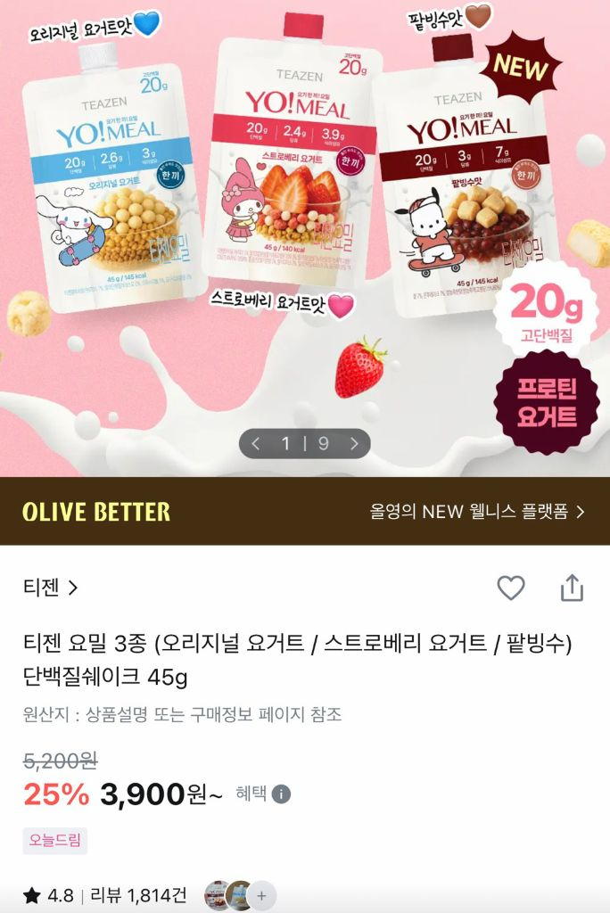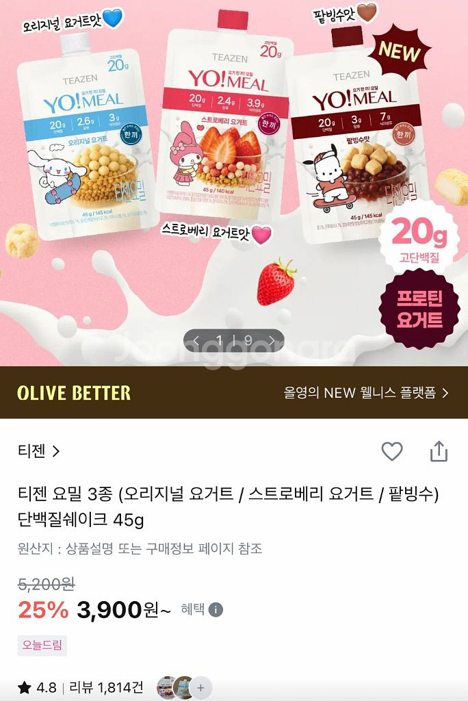 개인정보(거래정보)를 주고받는 행위는 사기에 노출될 수 있으므로 즉시 중고나라로 신고해 주세요티젠 요거트맛 단백질쉐이크 총 22개 택포 5만원에 판매합니다. 딸기맛 17개 오리지널맛 5개구성이고 27.08월까지예요 현재 올리브영에서 25%할인해서 개당 3,900원에 판매중이에요 개당 2천원초반대로 판매할게요 필요하시면 연락주세요