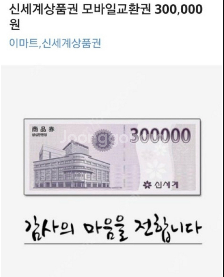 백화점에서 사용 가능한 30만원 상품권이에요. 이마트와 신세계백화점 등 다양한 곳에서 사용할 수 있습니다. 27년 1월 유효 입니다