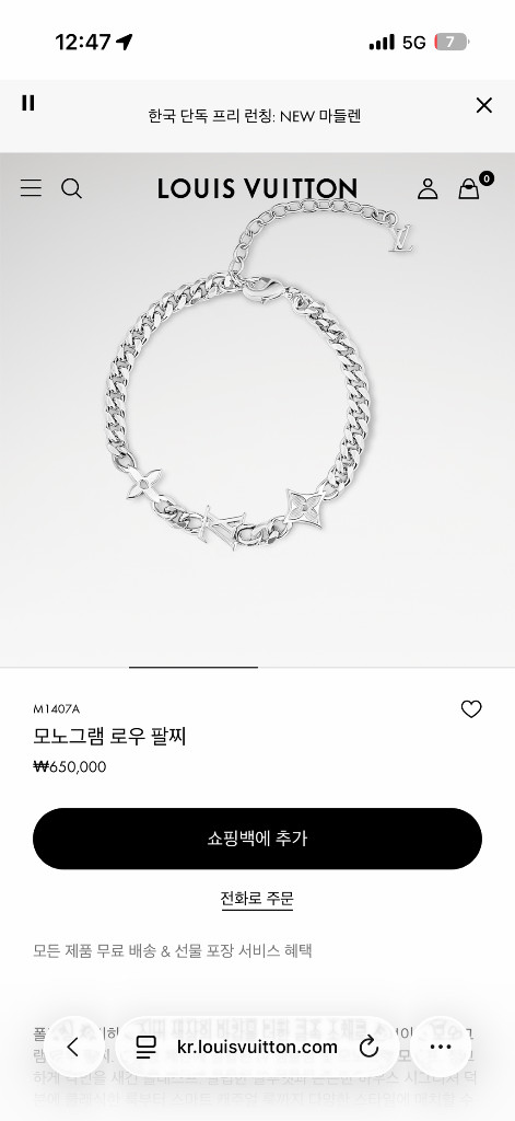 루이비통 2025년 여름쯤..? 영등포 신세계백화점에서 구매했어요 남성용 디자인이 더 마음에들어서 구매했는데 사이즈가 너무커서 불편하길래 몇번착용 못하고 팔아요 상태 좋고 풀박입니다~!