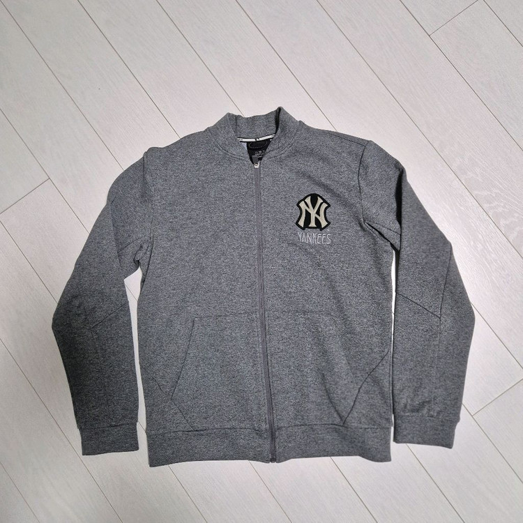 양키즈 그레이 컬러 집업이에요. 야구팀 로고가 포인트로 들어가 있고 상태 양호합니다. 가볍고 활동하기 편한 디자인이에요. 실착용이 몇번 되지 않아 깨끗합니다 95사이즈 중고학생 남아들에게 적합할듯 합니다.