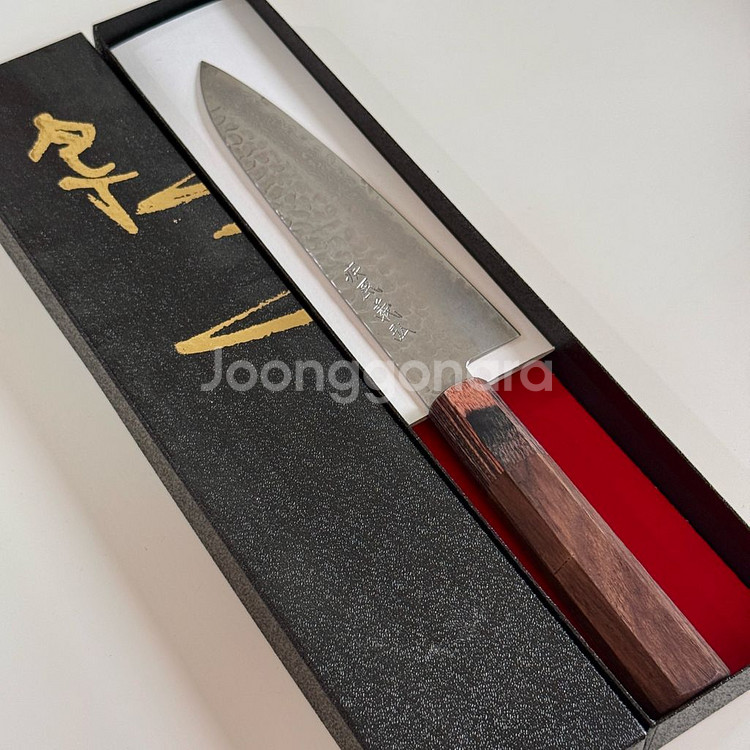 개인정보(거래정보)를 주고받는 행위는 사기에 노출될 수 있으므로 즉시 중고나라로 신고해 주세요- 6개월 전 구매 후 가정용으로 2-3회 사용 요시히로 VG-10 46층 해머드 다마스커스 규토입니다 장미목 손잡이가 특징이며, 칼날에는 아름다운 다마스커스 무늬가 있습니다 VG-10 강재를 사용하여 절삭력이 뛰어납니다