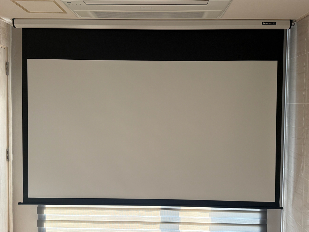 윤씨네 V-EH 전동노출 빔스크린 16:9 가정용 홈시네마 253.6cm(100) 25년3월말 구매 사용 몇번 안했습니다 오셔서 가져 가셔야 돼요 당산역 근처 직거래만 가능합니다 빔프로젝트도 따로 판매중이니 같이 구매 하시면 네고 해드릴게요