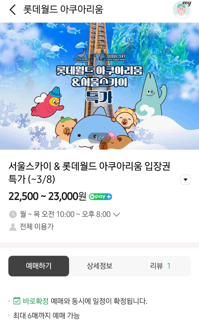 롯데월드 아쿠아리움 1인티켓 판매합니다.