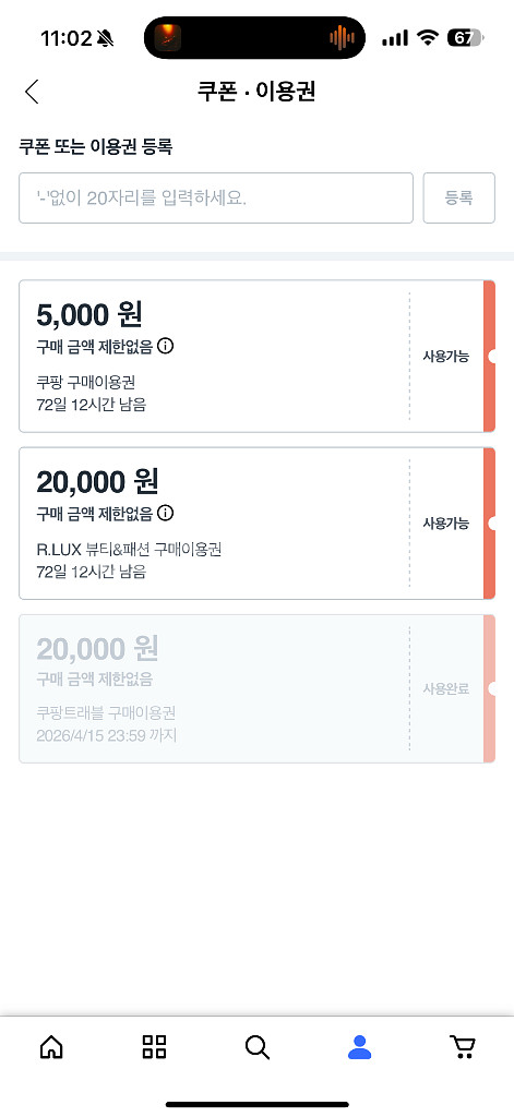 쿠팡 알럭스 R.LUX 2만원 쿠폰 판매합니다.