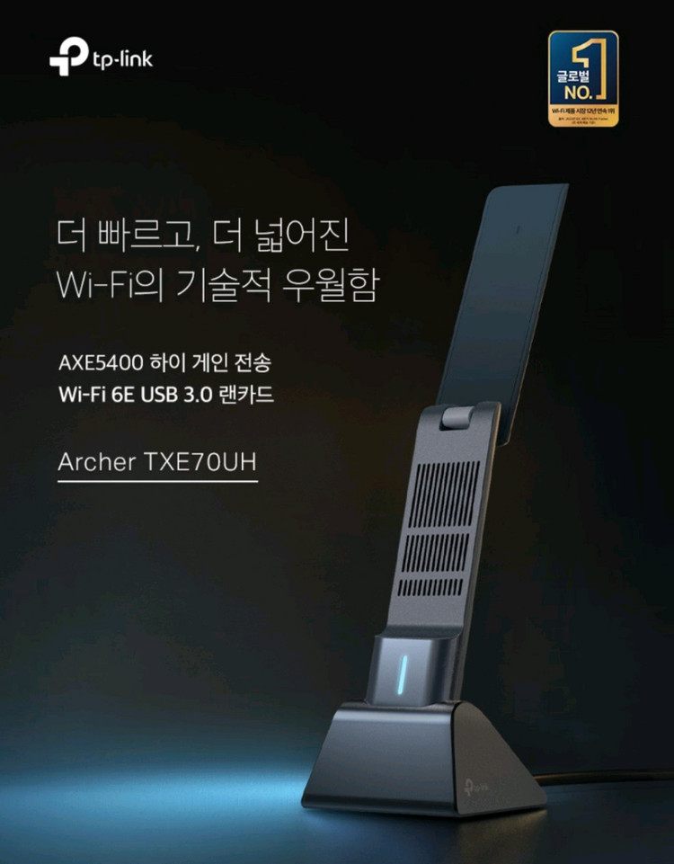 TP-Link AXE5400 Wi-Fi 6E USB 어댑터 Archer TXE70UH 미개봉 새제품입니다 최신 Wi-Fi 6E 기술을 지원하여 6GHz 대역폭과 160MHz 채널을 통해 최대 2402Mbps의 초고속 무선 연결을 제공합니다 USB 3.0 인터페이스로 빠른 데이터 전송이 가능하며, WPA3 보안 기능으로 안전한 네트워크 환경을 구축할 수 있습니다 다중 각도 안테나로 신호 수신율을 높여 안정적인 연결을 제공하고, 저지연 게이밍과 쉬운 설치, 강화된 보안 기능으로 편리하게 사용할 수 있습니다 Windows 10/11 운영체제와 호환되며, 3년 무상 보증이 제공됩니다