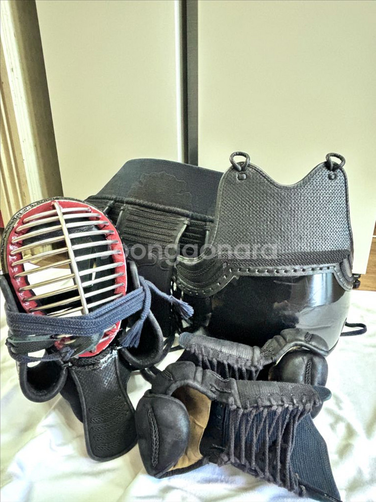 검도 호구 판매합니다! 실측 사이즈 호면은 수평둘레 54cm 대각선 둘레 68cm 면금 댓살 13개입니다. 호완은 손둘레 11cm 손길이 19cm 기준으로 구매한 제품입니다. 호면(머리) 부분에 이염이 있습니다. 현금 거래, 직거래 지향합니다.
