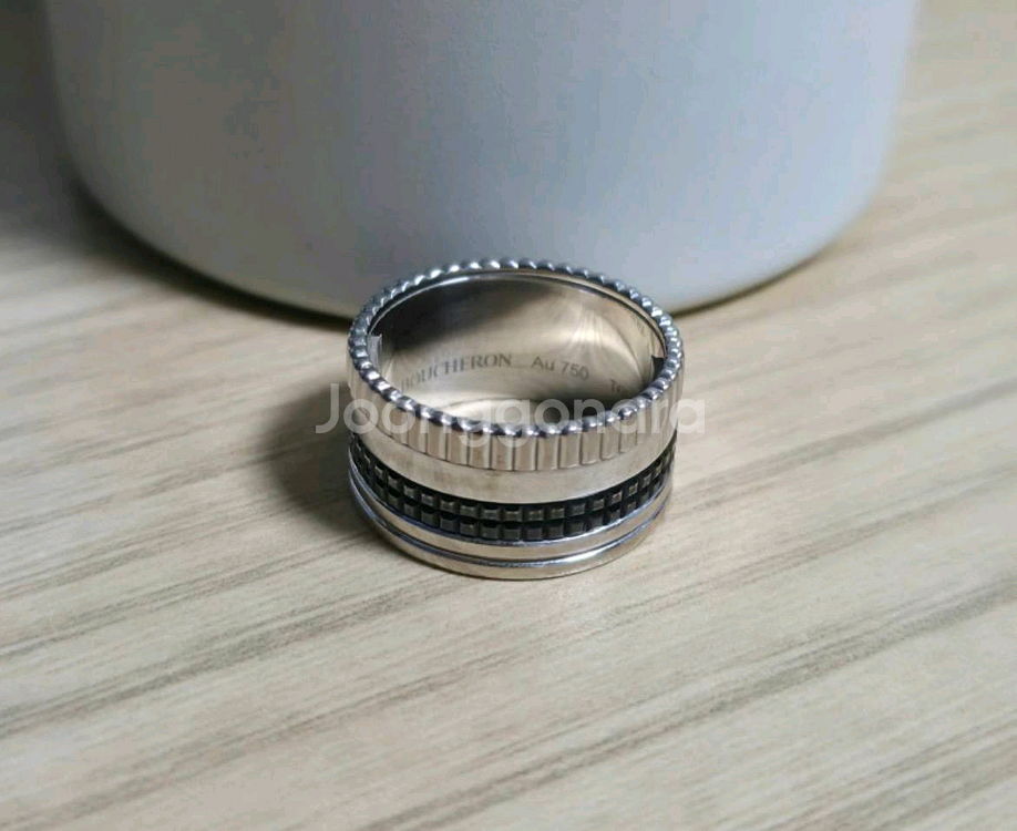부쉐론 콰트로링 라지 6단 블랙에디션 60호 18k화이트골드 손가락 19호나 18호 쓰시는 분들 추천드립니다 반지 폭이 있다보니 보증서 박스 제품 구성입니다 블랙pvd로 하얀색 세라믹 제품과 달리 모두 금으로 이루어진 제품 반이상가격내려 처분합니다