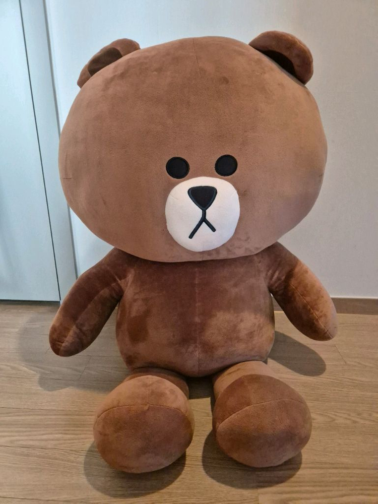 라인프렌즈 브라운 대형 곰인형, 110cm 사이즈 압도적 크기 압도적 카리스마 압도적 귀여움 덩치가 커서 택배거래 가능할지 모르겠습니다.