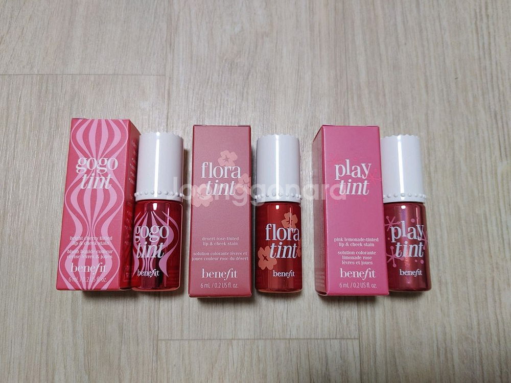 베네피트 틴트 면세점상품이며 새제품입니다. 용량은 6ml이고 색상별 제조코드와 3년 기준 사용기한 표시해드려요. 색상은 실사 왼쪽부터 고고틴트 (4M01 202712월까지) 플로라틴트 (5F01 2706월까지) 플레이틴트 (4L02 202711월까지) 입니다. 종류무관 1개 20000원입니다.