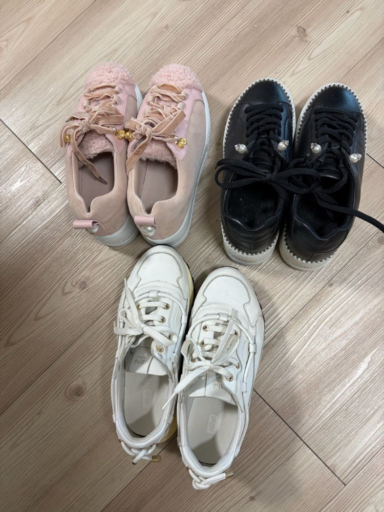 슈콤마보니 스니커즈 분홍색 운동화 판매합니다 - 핑크색 스니커즈는 부드러운 스웨이드 소재와 털 장식이 특징입니다 전체적으로 사용감이 있는 점 참고해주세요 사이즈 225 반품안되니 신중구매해주세요