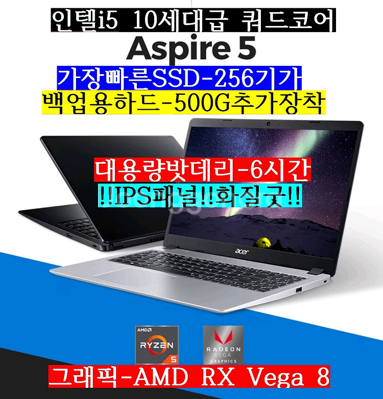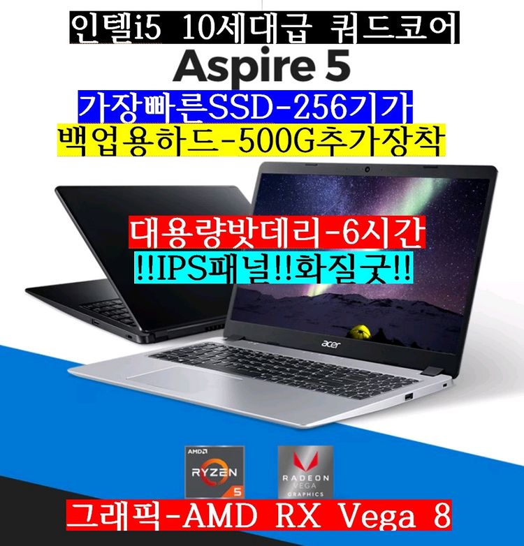 최저가 판매합니다. 새 무선마우스 동봉합니다. 에이서 초고사양 노트북 15.6인치입니다. 15.6인치 풀HD IPS액정입니다. 1920*1080의 고해상도 노트북 인텔과 비교시 i5 10세대급성능입니다. 쿼드코어 고성능 CPU탑재 초고사양 라이젠5 3500U CPU와 최신램-8기가, 가장빠른SSD-256기가,탑재한 초고사양 노트북 입니다. 백업용하드-500기가 추가장착 어지간한 게임정도 돌아가는 초고사양 노트북입니다. ***한가지 말씀드리면 윈도우설치후 터치패드가 않됩니다. *** 새무선마우스 드립니다.*** 미세한 생활기스는 있지만 액정상태 좋고 성능도 아주좋아요.(실사확인) *대용량밧데리-6시간* 스펙은 1.CPU-라이젠5 3200U 2.최신램(DDR4)-8기가 3.그래픽-RX Vega 8 4.가장빠른SSD-256기가 5.백업용하드-500G 추가장착 6.밧데리-완충시 6시간정도 윈도우11 설치 되어있고 한글,오피스 설치 되어있어요. 바로 사용 가능 합니다. 노트북.어댑터 발송됩니다.