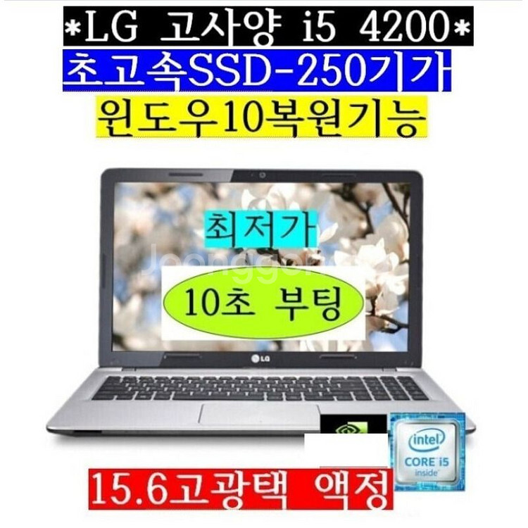 최저가 판매합니다. LG 고사양 노트북 15.6인치입니다. 15.6인치 고광택 액정입니다. 인터넷.사무용으로 최적인노트북 고사양 4세대 i5 4200CPU와 램-8기가, SSD-250기가,장착 그래픽은 인텔HD그래픽입니다. DVD멀티 장착되어 있어요. 생활기스는 있지만 성능은 아주 좋아요..(실사확인) 액정상태 좋아요.. 스펙은 1.CPU-i5 4200 2.램-8기가 3.그래픽-인텔HD4600 4.SSD-250기가 5.DVD멀티 6.밧데리-방전입니다. (어댑터에 꽂아 사용하세요.) 7.USB3.0단자 있음 윈도우10 설치 되어있고 한글,오피스 설치 되어있어요. 바로 사용 가능 합니다. 노트북.어댑터 발송됩니다.