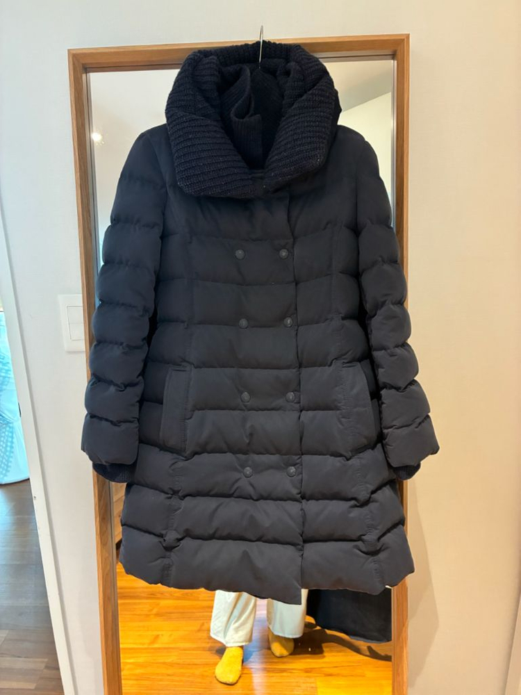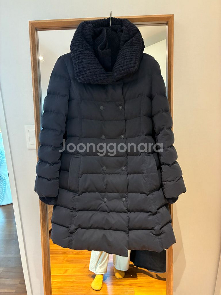 일단 연식은 있는 옷 입니다. 하지만 보관을 잘 했고 색상이 바래거나 큰 흠은 없는 옷 입니다. 저는 제가 판매 할 때 연식이 있어도 지금 입을 수 있는 상태 트렌드에 맞는 옷만 판매합니다. 제가 구매자로 생각해도 살 수 있을 옷만 판매 하는 게 제 원칙이에요 일단 색상은 딥한 네이비이구요. 디자인 자체가 굉장히 클래식 하고 일반 패딩과 다르게 트렌치 느낌이 나는 옷이에요 뒤쪽에 장식용 벨트가 있고, 입으면 허리를 아주 강조 해 주는 것은 아닌데 여성스러운 라인으로 떨어집니다 보통 롱패딩도 많이 필요 하지만 이렇게 엉덩이 덮는 길이감에 패딩도 필요 하더라구요. 사진에서 보시다시피 단추는 바램이 있고, 목 부분 니팅에 보풀이 좀 있지만 실제로 보시면 신경쓰이실만큼은 아니에요. 좋은 점은 안쪽에 니트로 1번 더 잠글 수 있고, 목부분에 니트를 잠그면 목도리를 할 필요가 없을 정도에요. 일단 패딩 자체가 굉장히 빵빵 합니다. 만져 보시면 아실거구요. 그래서 굳이 두꺼운 이너가 필요 없을 정도로 따뜻합니다 제가 추위를 많이 타서 코트는 간절기에서 겨울 그 사이에만 입을 정도로 겨울에는 패딩만 입는데요 이 옷은 너무 따뜻하고 디자인도 예뻐서 계속 소장하고만 있었습니다 사진으로 잘 표현이 안 되지만 직접 받아 보시면 정말 잘 만들어진 패딩이라는 걸 아실거구요. 구입 시기 상태 감안해서 책정 한 가격이에요. 정가는 그 당시에도 아주 비쌌어요 가슴 반품 45 총장 80 제가 44-55 입어요. 딱 정55까지만 추천 드려요 무게가 있어서 택배비는 4000원 받겠습니다 원래 더 나올 텐데요. 구매 의향 있으신 분들은 편하게 문의 주세요 가격조정은 받지 않습니다