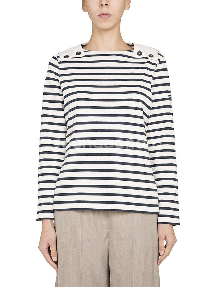 (새상품) 세인트제임스 세일러칼라 스트라이프 티셔츠 38사이즈 Saint James의 세련된 "Voiron R" 티셔츠로 코디해보세요! 이 티셔츠는 레귤러 핏으로 전통적인 줄무늬 패턴과 클래식한 보트넥 컷이 특징입니다. 100% 코튼 소재로 만들어졌으며 단추로 탈부착 가능한 세일러 칼라가 포인트에요. - 보트넥 - 단추가 달린 분리형 세일러 칼라 - 줄무늬 패턴 - 일반 핏 - 면 100% - 모델은 키 178cm이고 40 사이즈를 착용 택있는 정품이라 선물도 가능해요