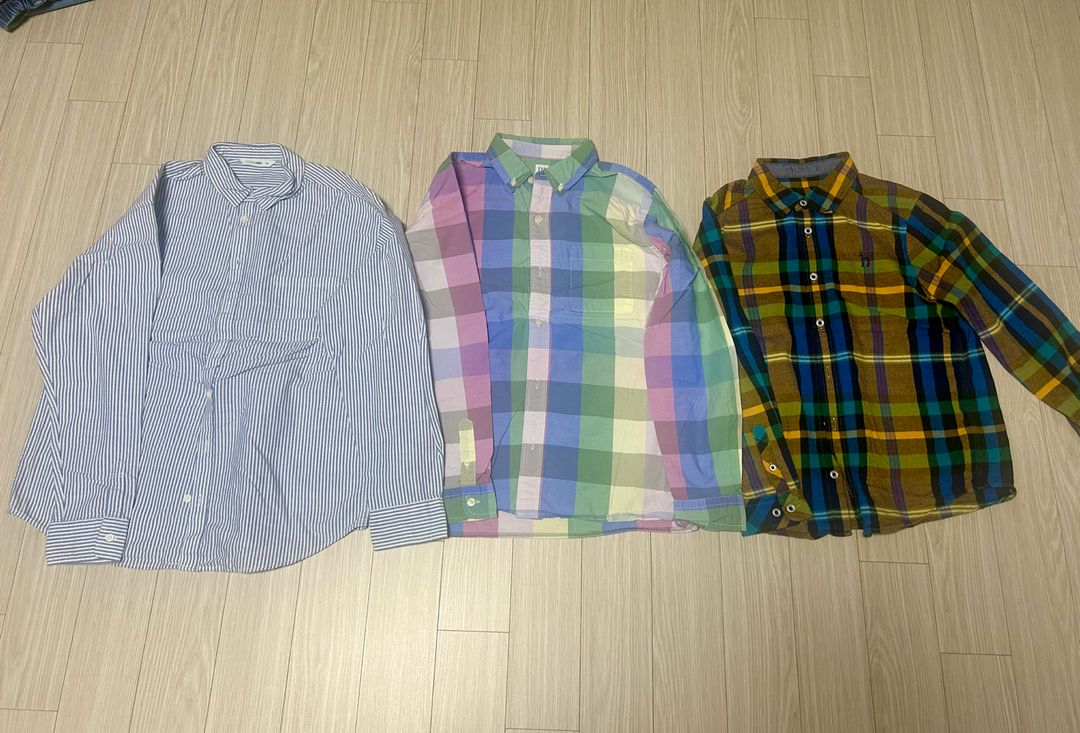셔츠3 : 탑텐, 갭, 헤지스 면티4 : 빈(been), 게스, 탑텐 맨투맨6 : mlb, 필라, 게스, 블루독 반팔티4 : 헤지스, 빈폴, 블랙야크, 탑텐 바람막이 : 탑텐(봄가을용 / 여름용) 바지 : 탑텐, 블루독 150-160 사이즈입니다 일괄 판매합니다 적당한 가격 조정 가능합니다