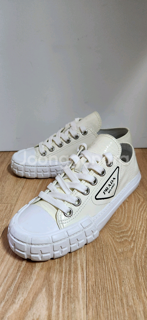개인정보(거래정보)를 주고받는 행위는 사기에 노출될 수 있으므로 즉시 중고나라로 신고해 주세요(정품)프라다 개버딘 스니커즈 아이보리 색상 송아지 가죽 소재~ 운동화 단품 입니다 플랫폼 디자인으로 스타일리시하게 연출 가능합니다 37 사이즈 240mm 입니다 굽높이 3센티 정도에요 몇번 안신었어요 깨~끗 합니다