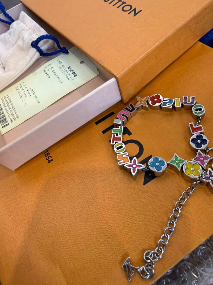 정품 모노그램 팔찌로 다양한 컬러의 모노그램 버클들이 연결된 예쁜 디자인이에요. 박스와 함께 판매하며 상태 양호합니다.